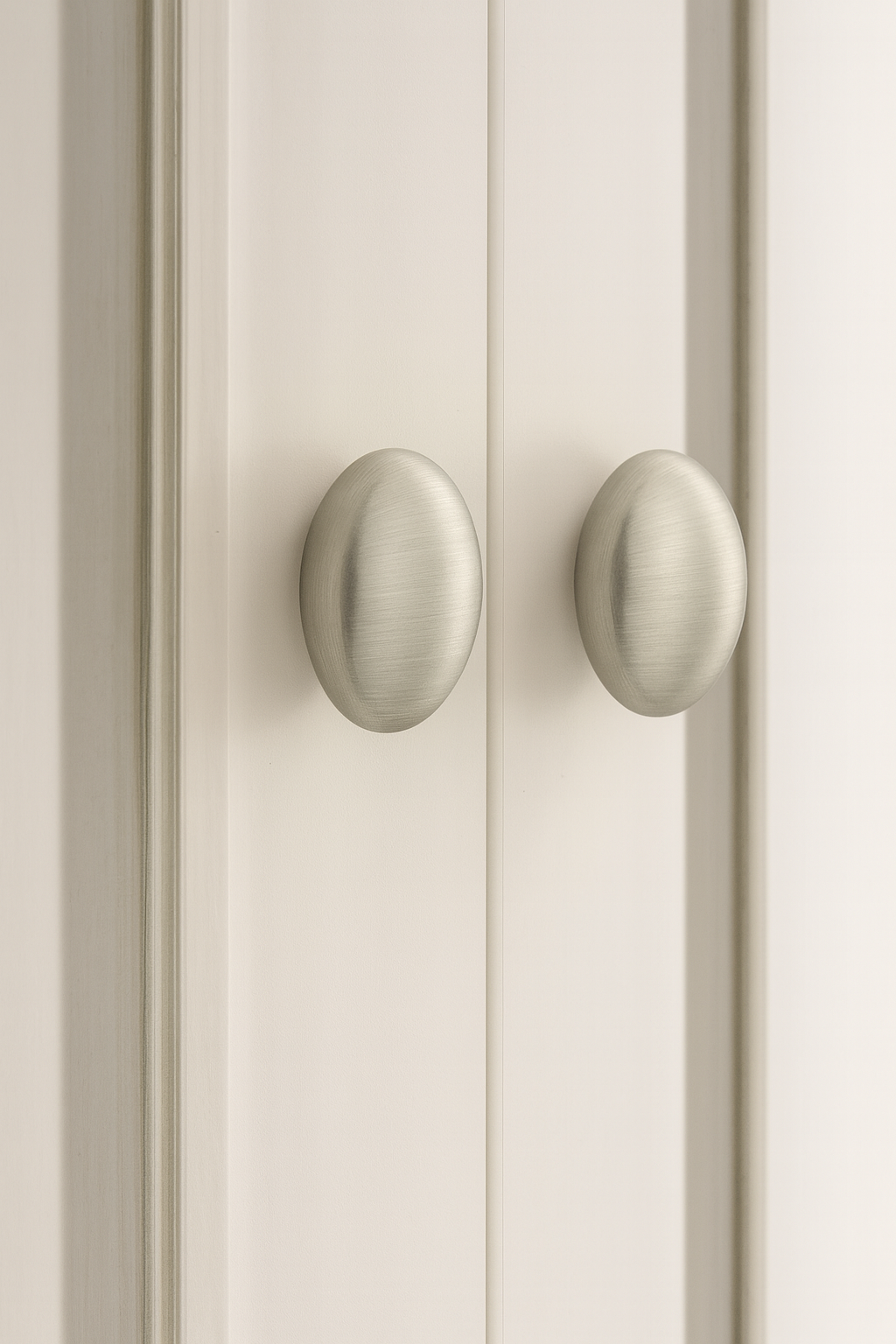 Kombiner gjerne ulike materialer – for eksempel messing knotter på overskap og stål knotter på underskap – for et spennende, men helhetlig resultat.